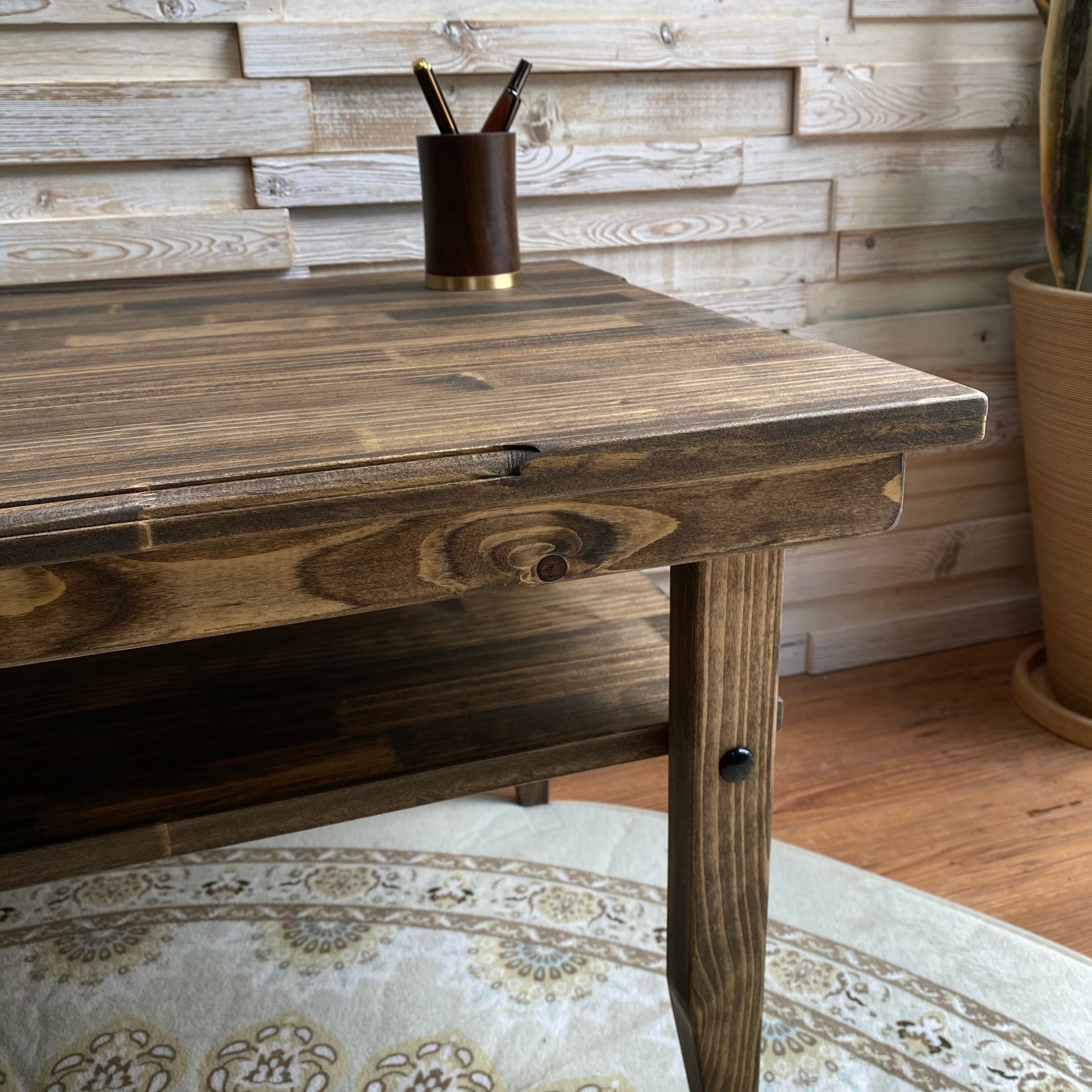 テーブル下には、ティッシュボックス、雑誌やリモコンなどが置けるちょっとした棚を取り付けてありますので見た目をスッキリきれいにできます。
