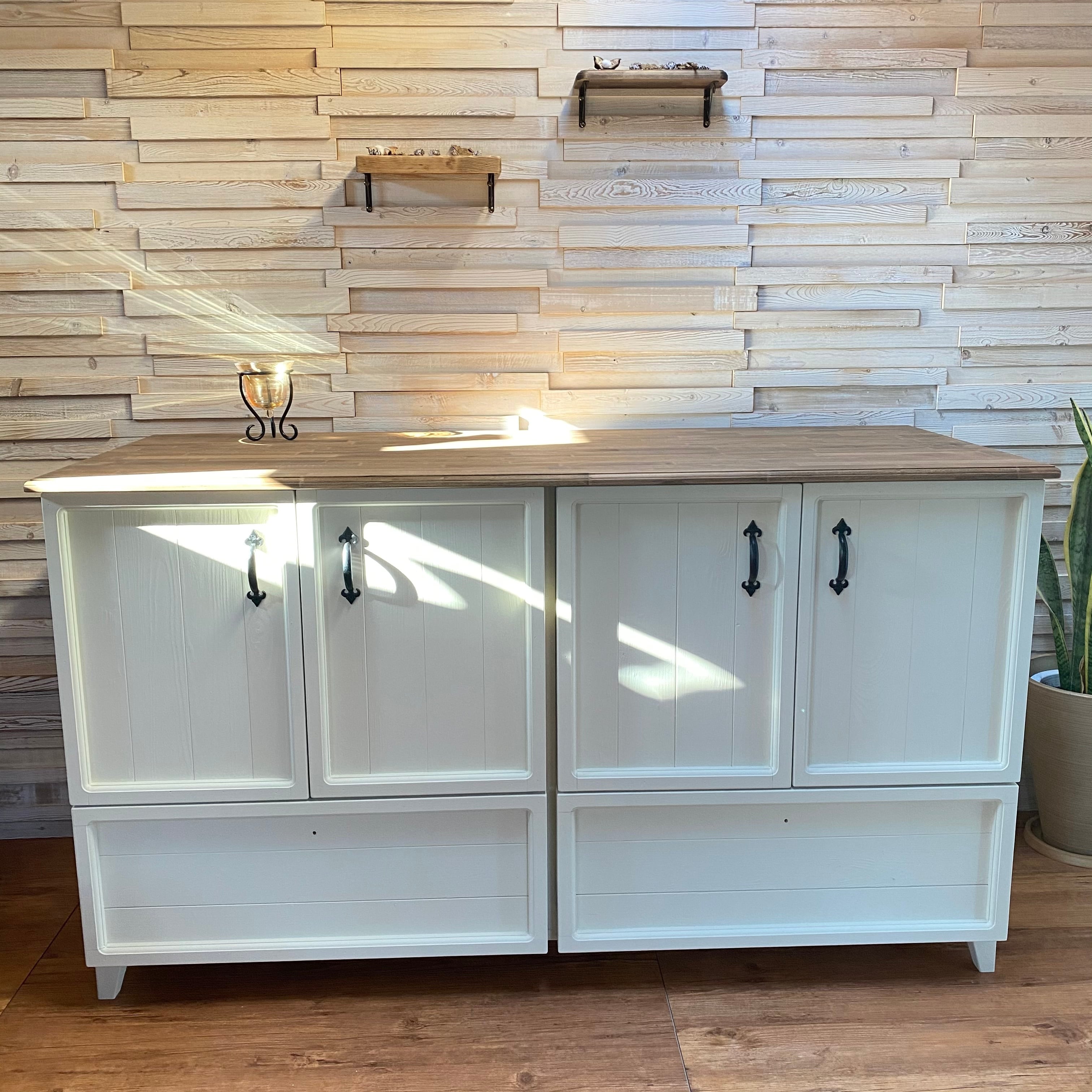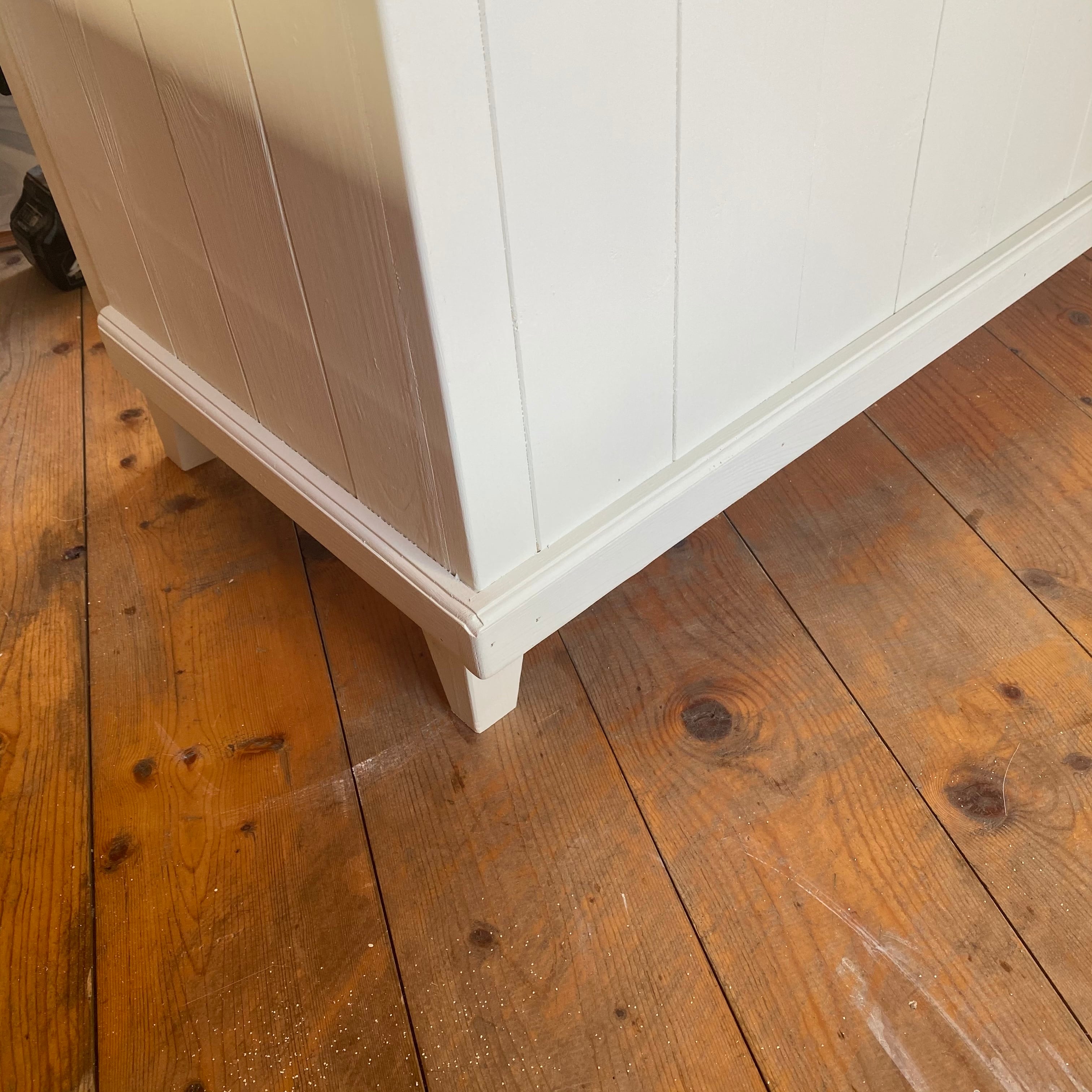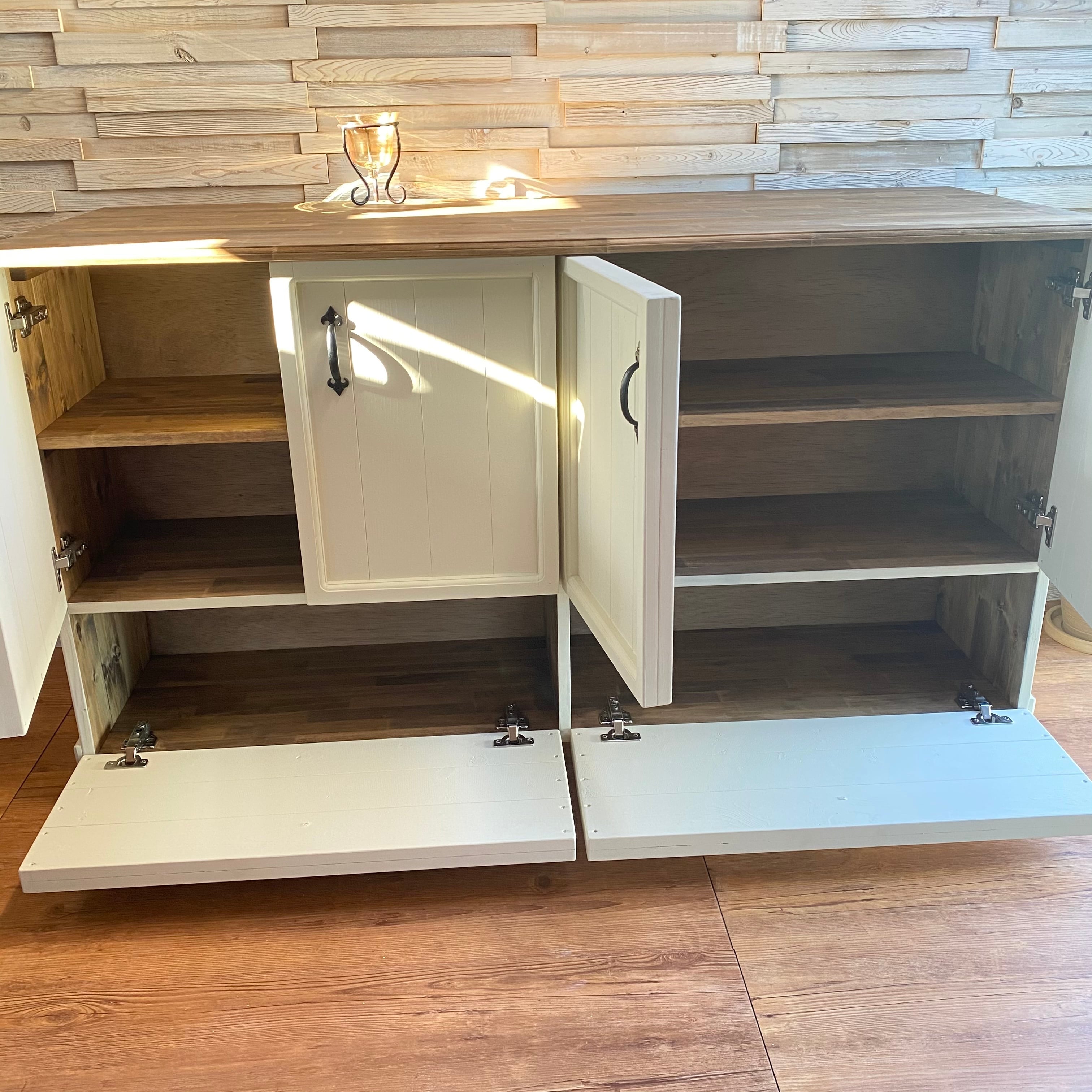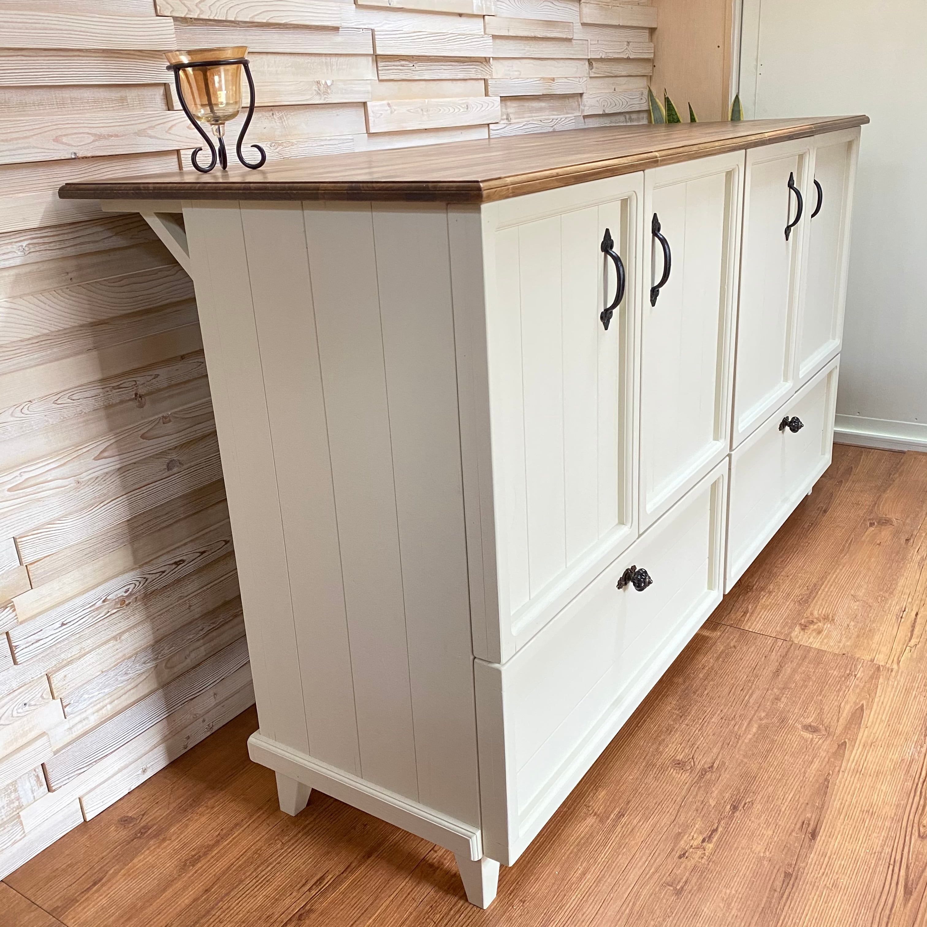天板と中はエシャ塗料、扉や側はコットン色「薄いベージュ」で下部には横長の扉があるタイプです。