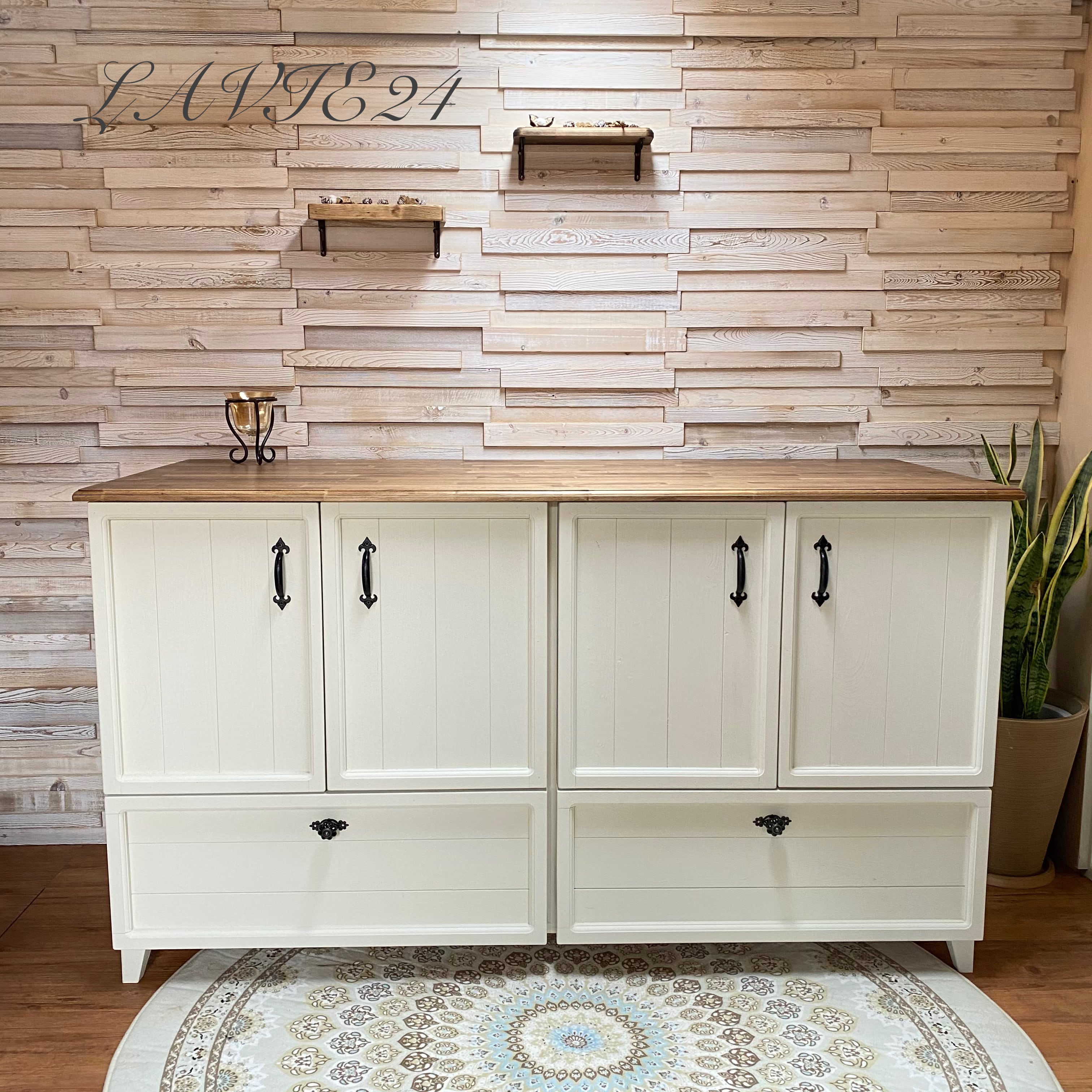 天然無垢材とパイン集成材を使用した北欧風、イギリス家具デザインで扉に特徴のあるフレンチシャビーな仕上がりになっております。