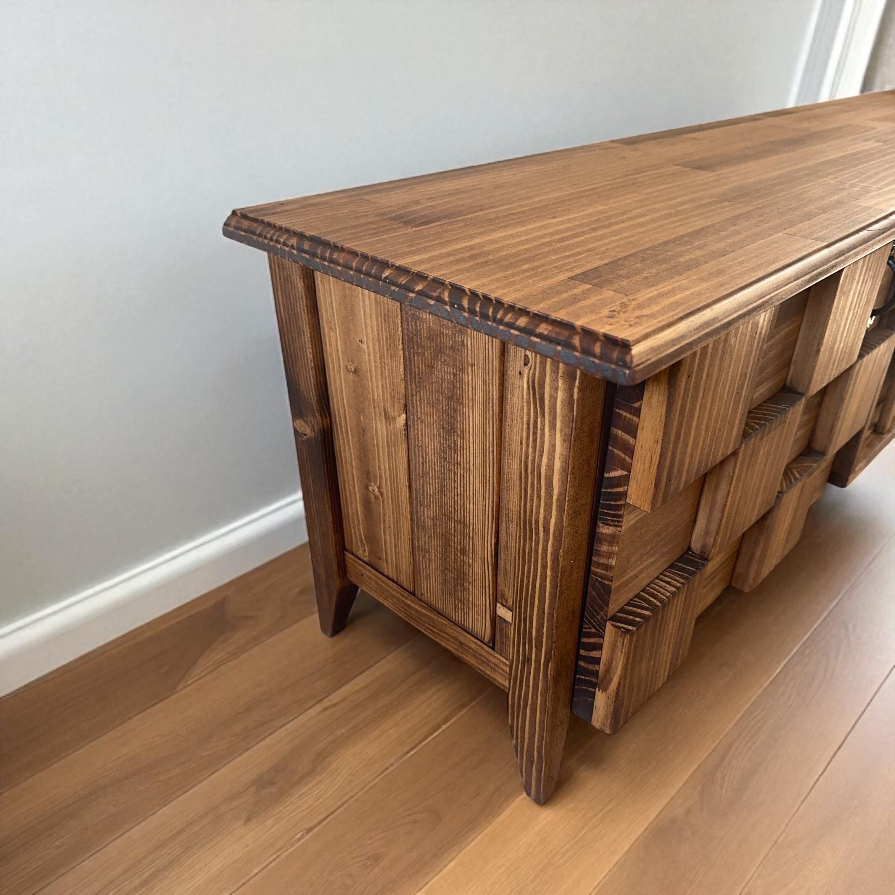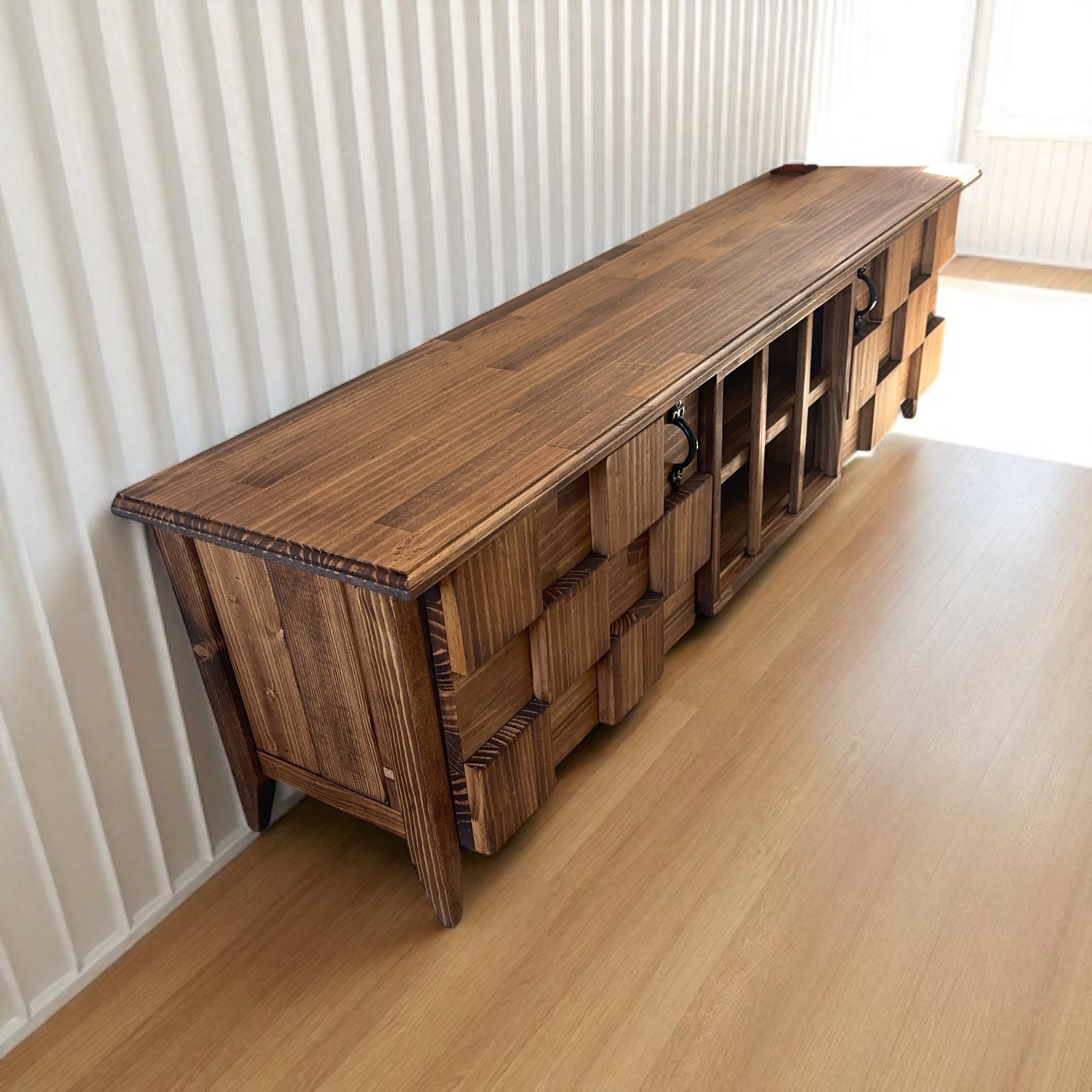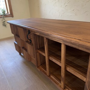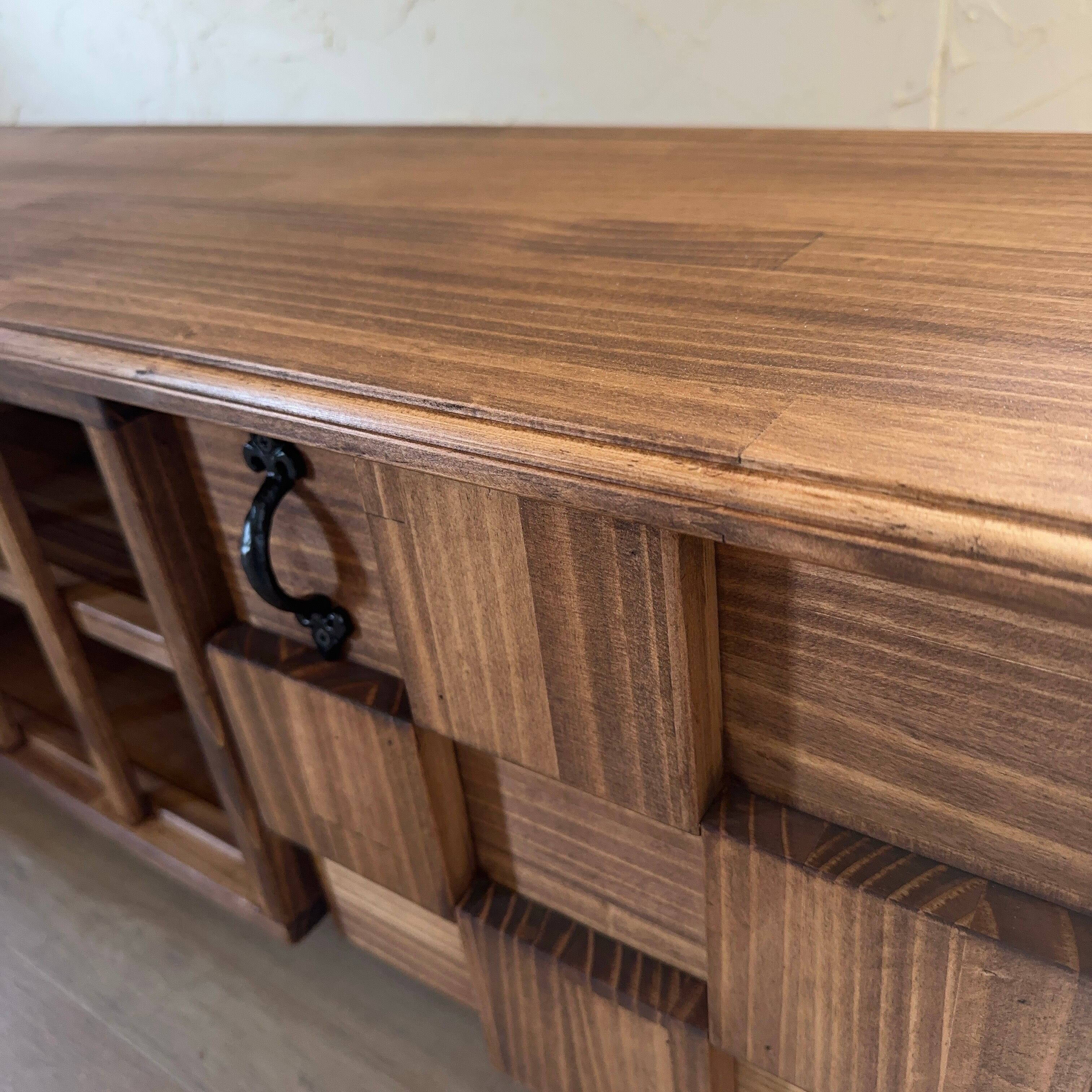 パイン集成材を使用し天板に飾り面を施工したデザインテレビボードです。