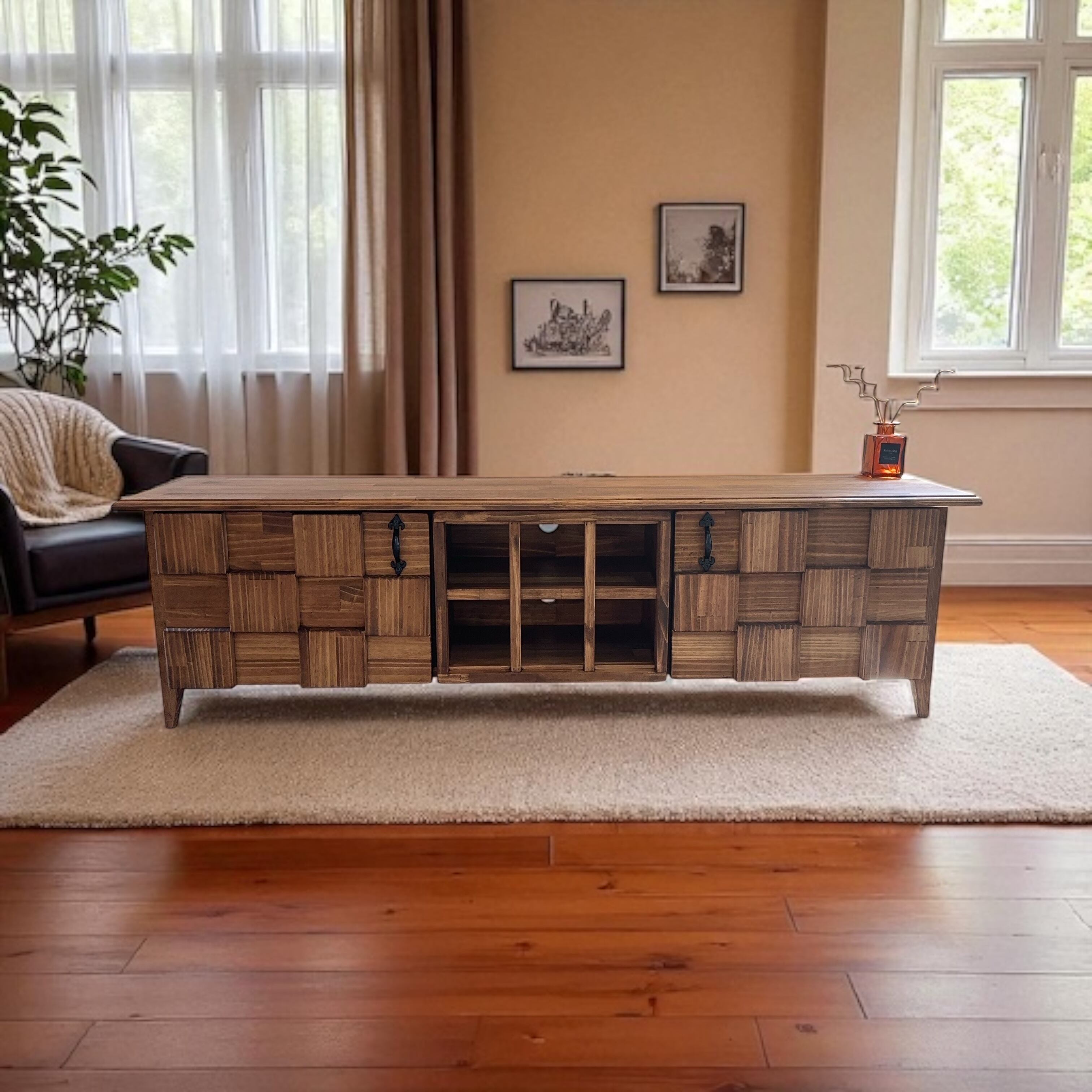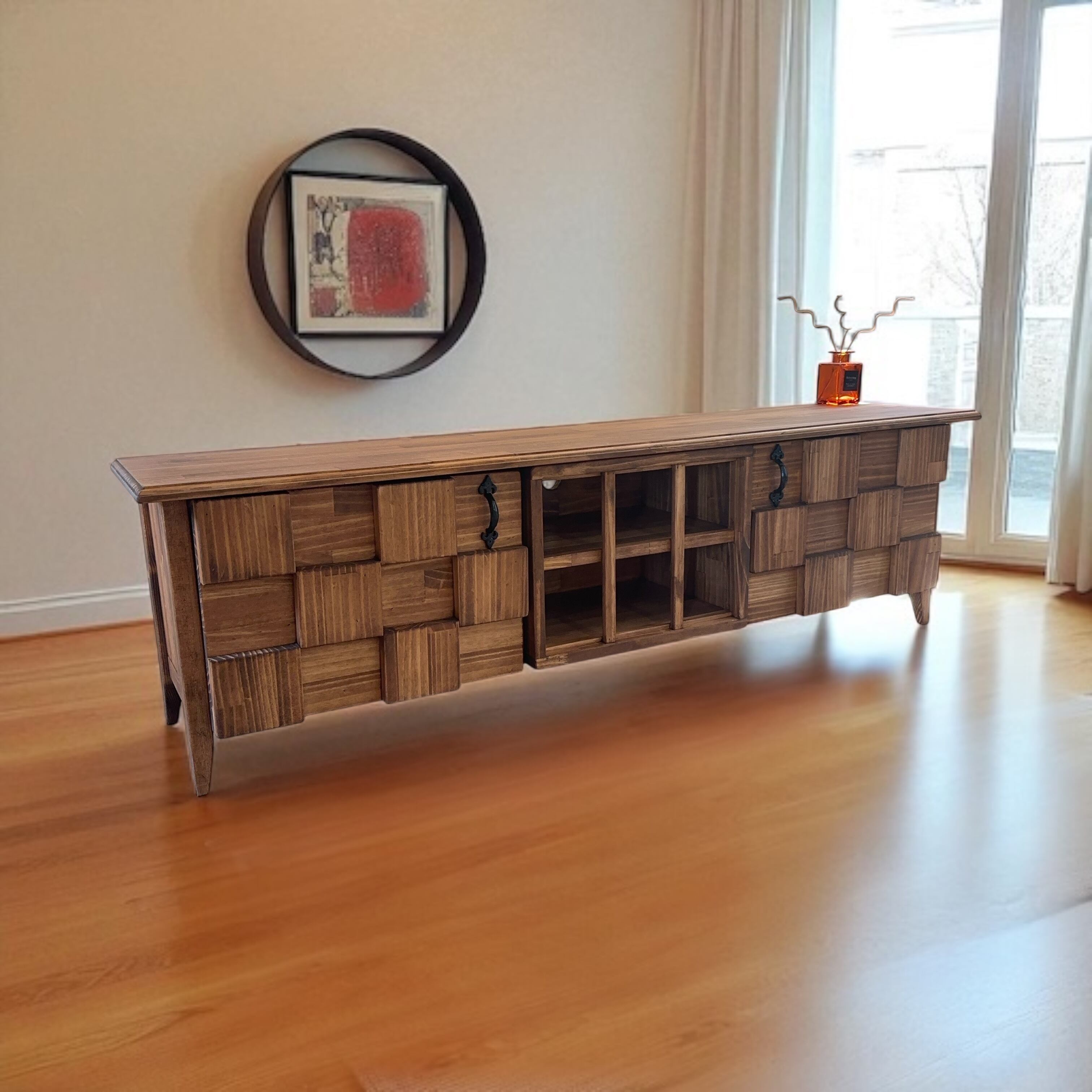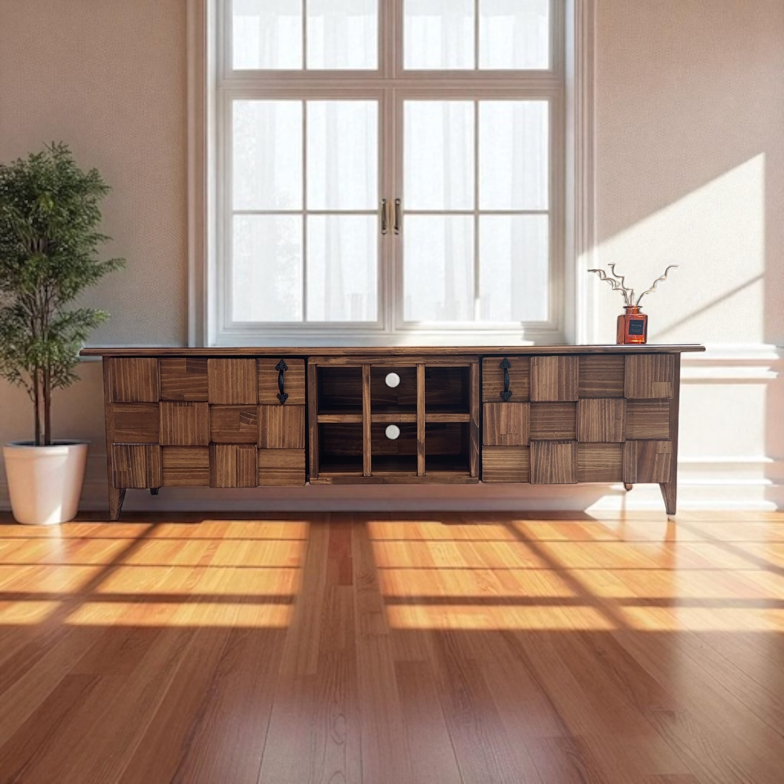 パイン集成材を使用し天板に飾り面を施工したデザインテレビボードです。