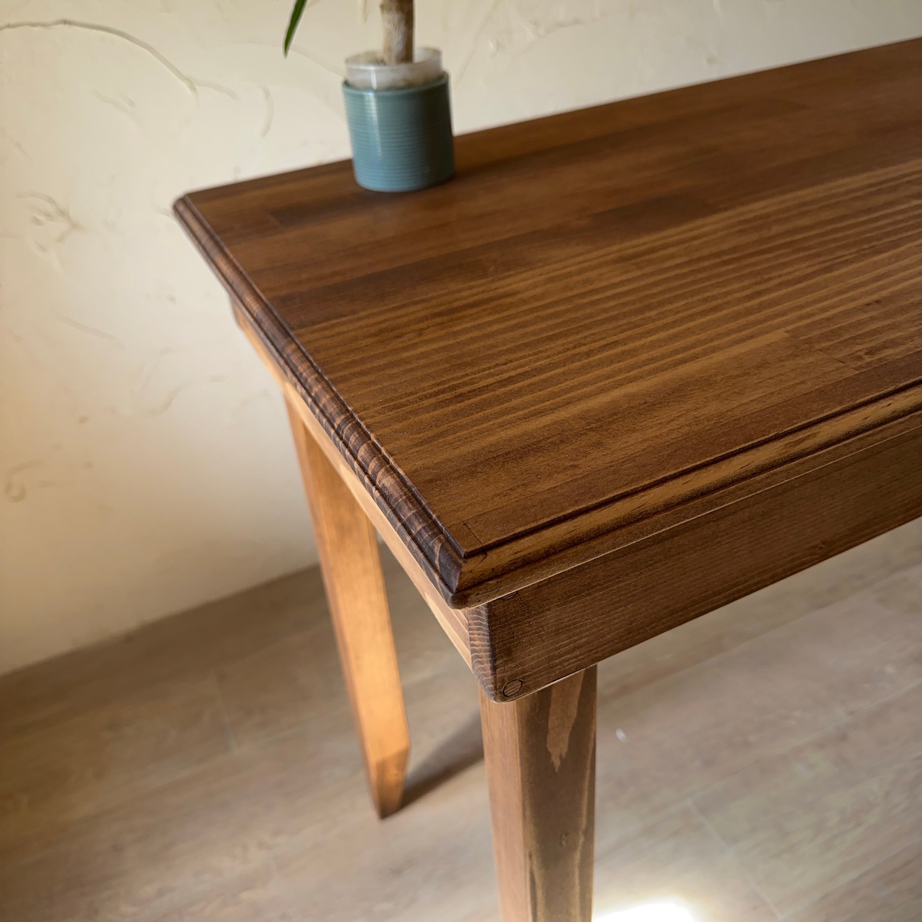 アンティークなテーブルに仕上げており木材を丁寧に時間かけて仕上げております。