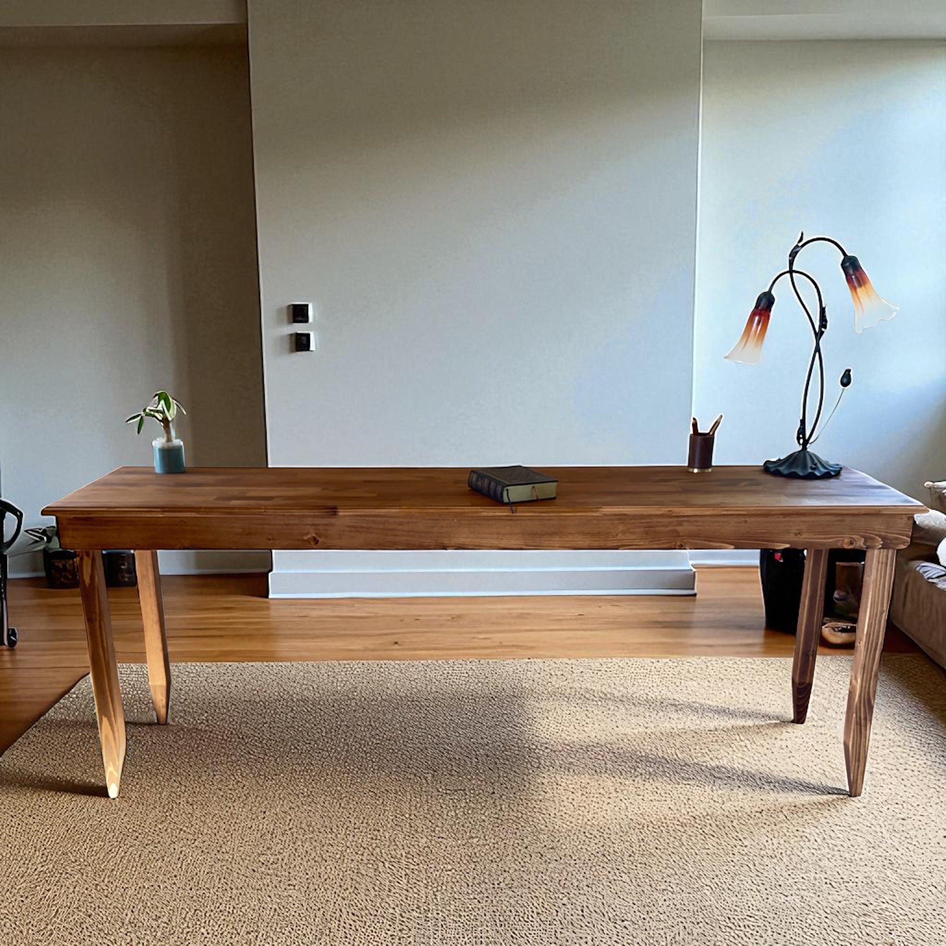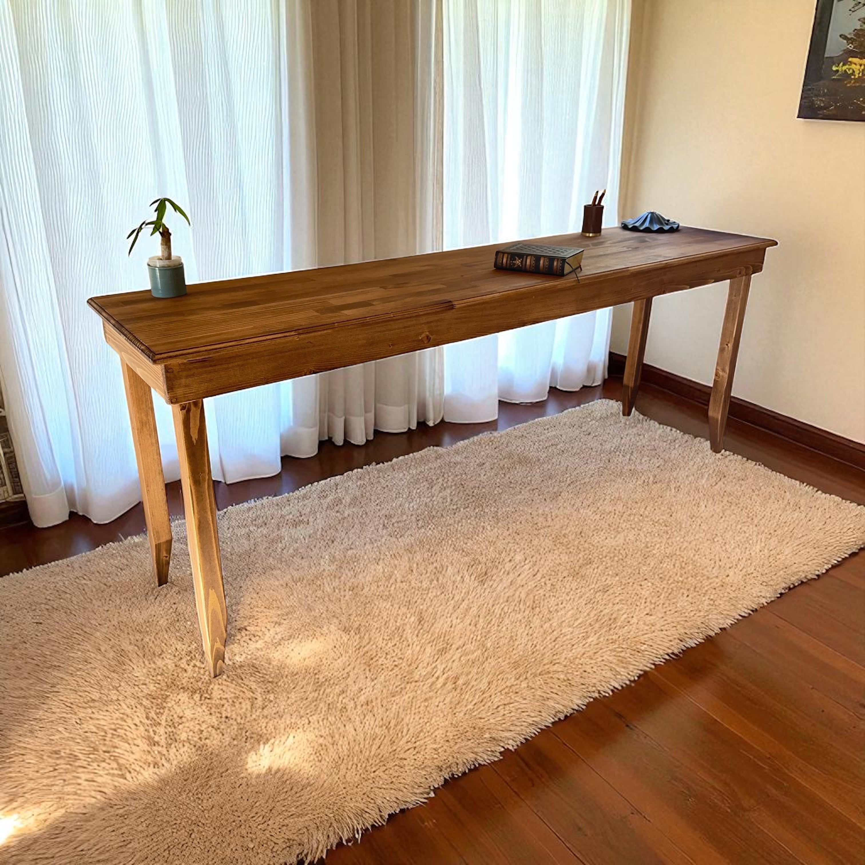 飾り彫りが綺麗なロングテーブル A /長いテーブル デスク 作業台 ミシン台 ダイニング 壁付け サイズオーダー可能