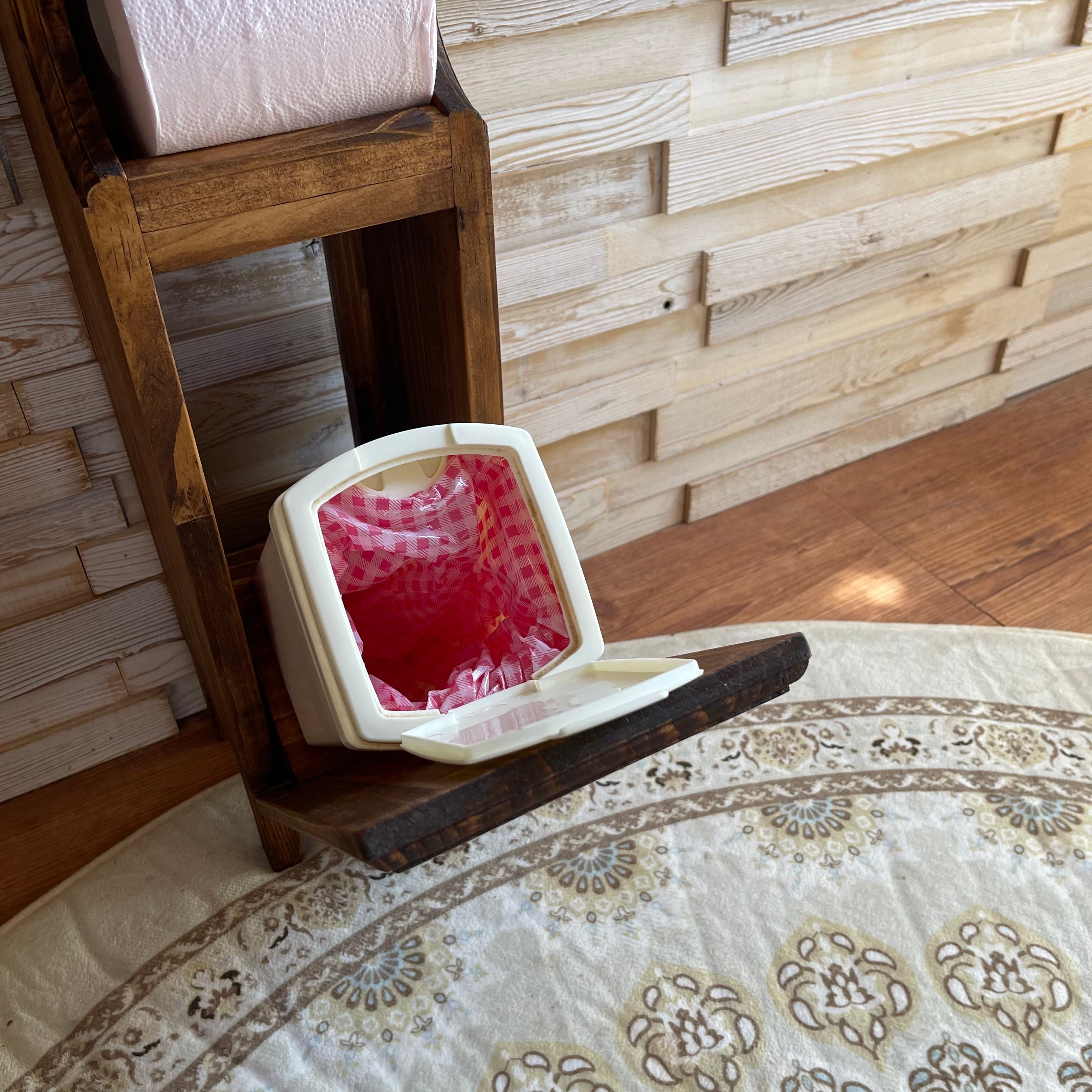 下の収納は、小さいゴミ箱、生理用品、消臭剤など、お好みのものを収納できます。